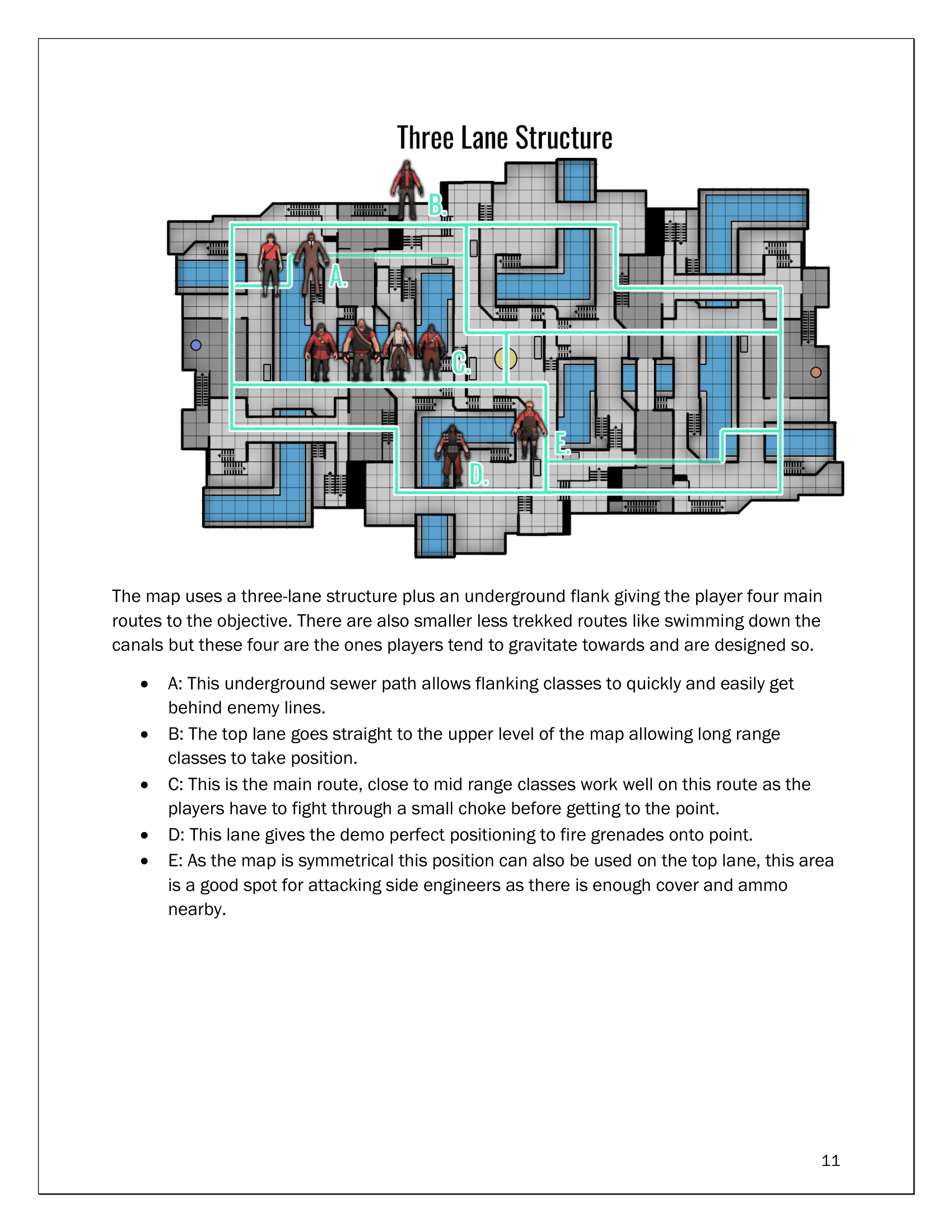 Over 8 weeks I was able to design, test and iterate my map into a polished and dynamic level that fits Team Fortresses design conventions and visual feel.